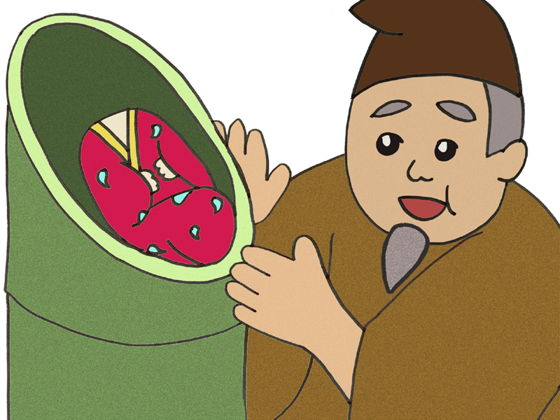 ぴかぴか きんいろに ひかる 竹を みつけました。