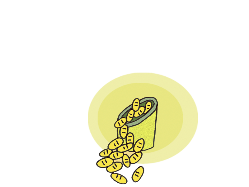 その竹の なかには、いつも おかねが ぎっしり つまっているのです。
