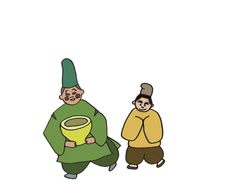 いそかみのちゅうなごん さまは、つばめが もっている 子やすがい。」