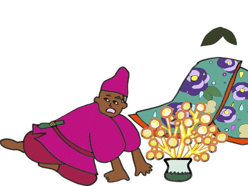 くらもちのみこ さまは、ほうらい山に あるという、ぎんの ねっこに