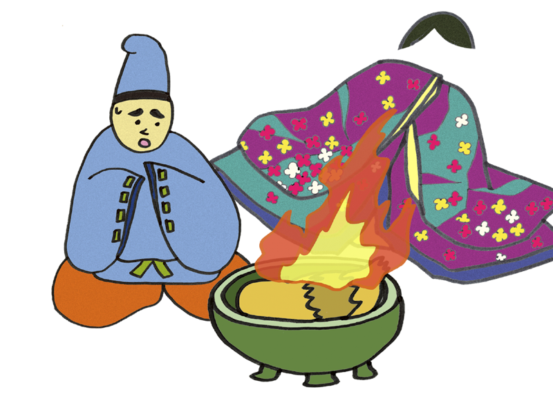 あべのうだいじんは、けらいが かってきた かわごろもを もって