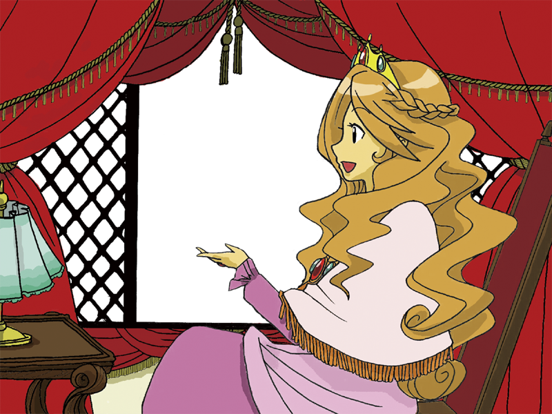 おしろでは、おきさきが かがみに むかって たずねていました。