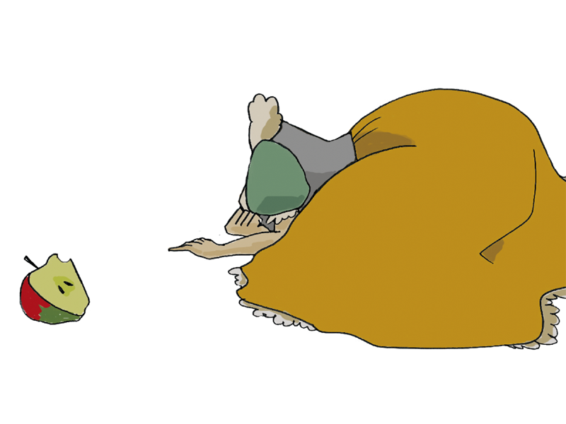 そう いって、おばあさんは りんごの はんぶんを たべました。