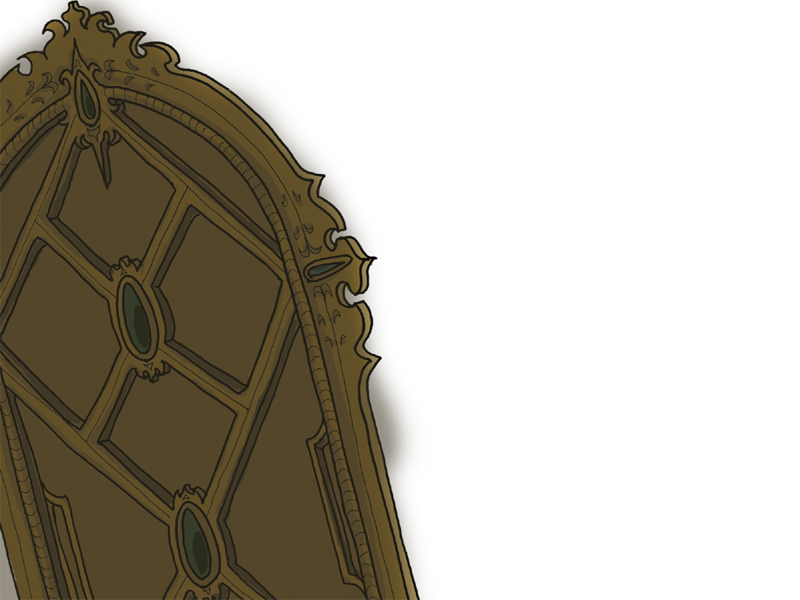 おきさきは、ふしぎな まほうの かがみを もっていました。