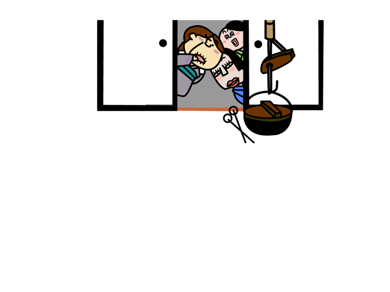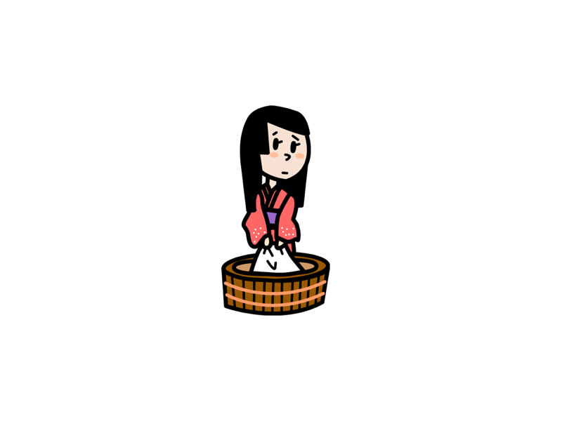 三ばん目の むすめは、あとかたづけを しなければなりません。