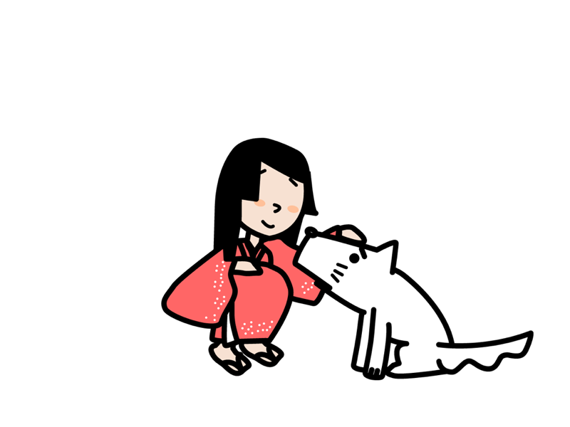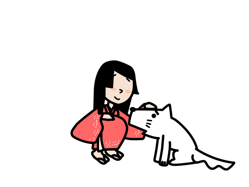 いぬと、三ばん目の むすめは、たいへん なかよしで、
