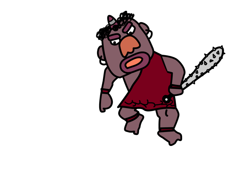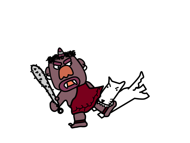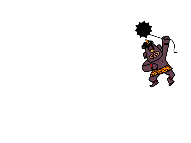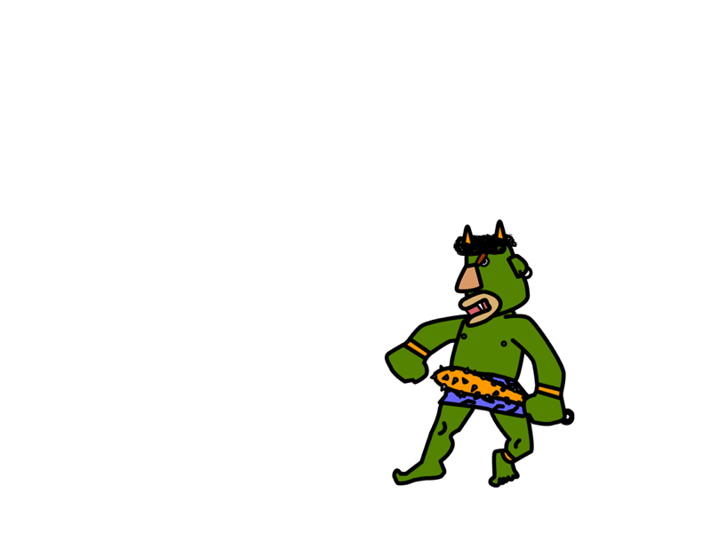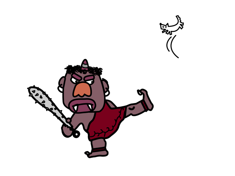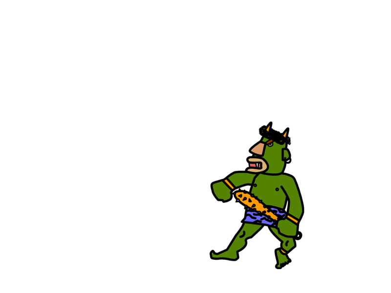 いぬは、わんわん ほえながら、おにの 足に かみつきました。