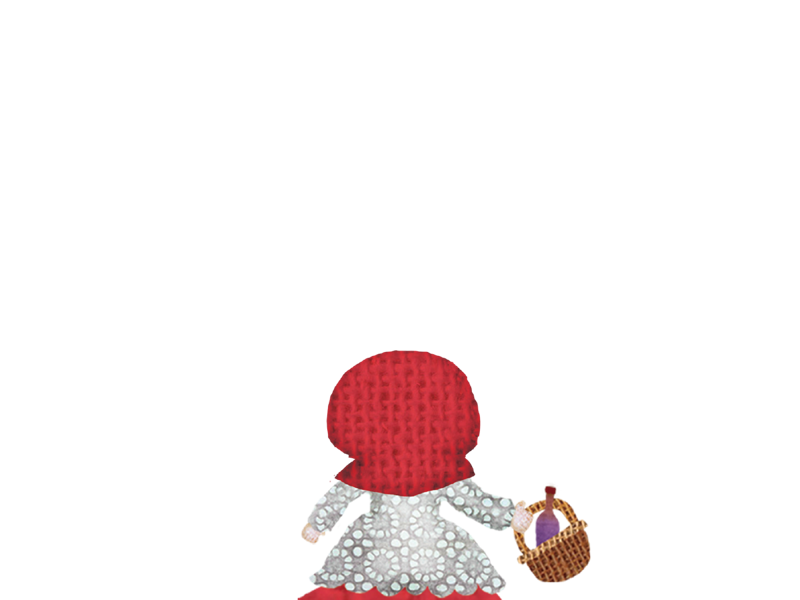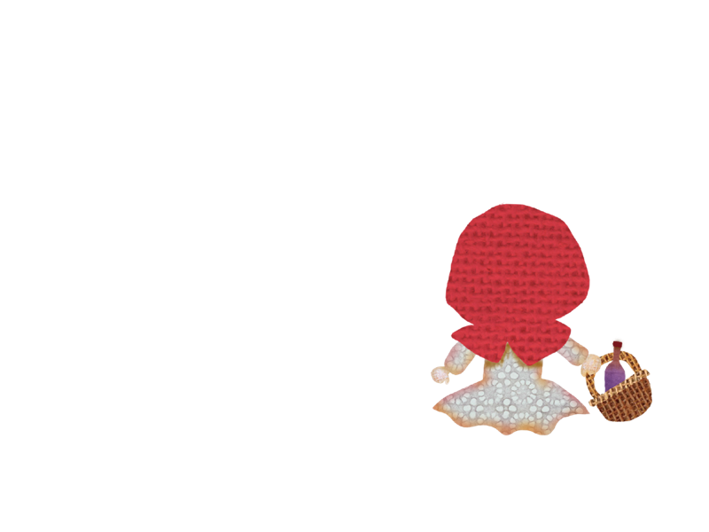 「わたし、あかずきんよ。おかしと ワインを もってきたの。」