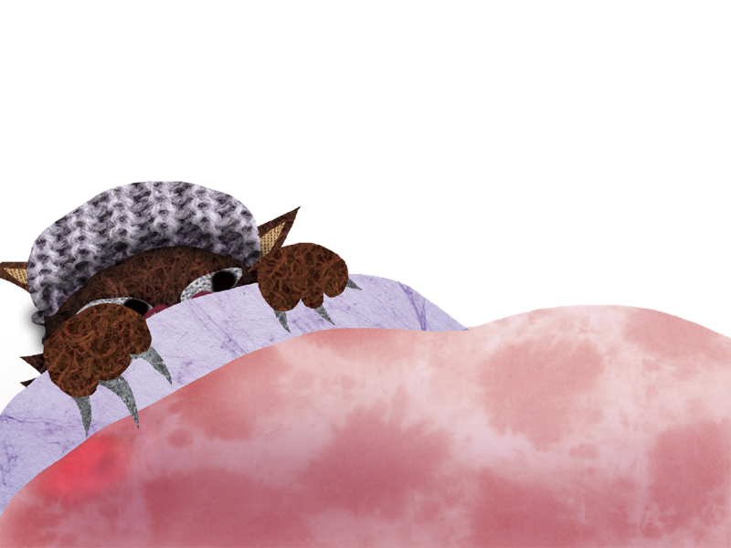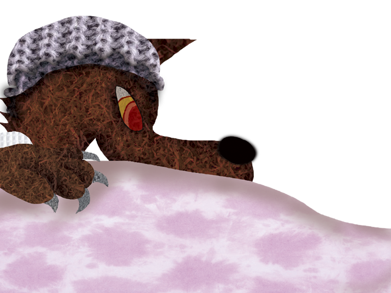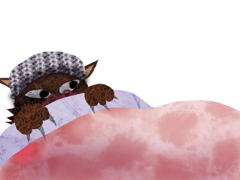 おばあさんの ベッドには おおきな オオカミが ねていました。