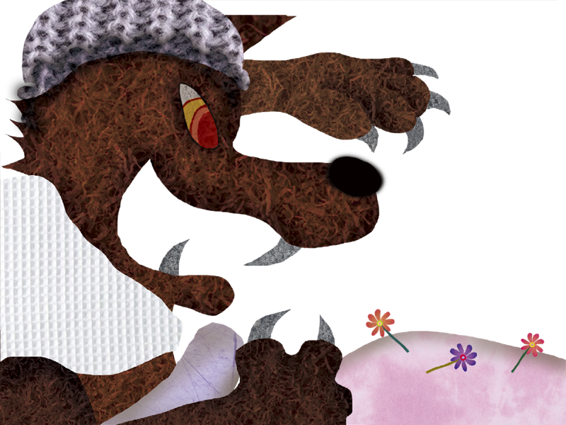 オオカミは、いっしょうけんめい かわいい こえで いいました。