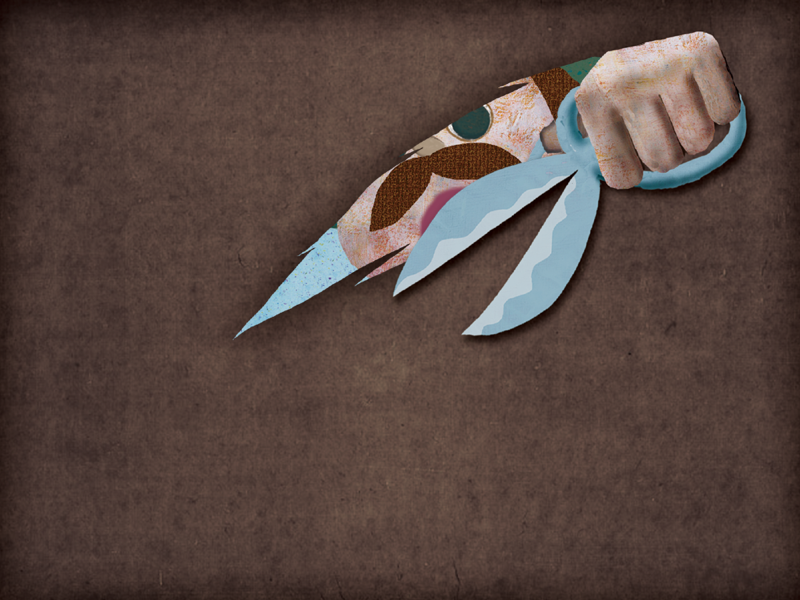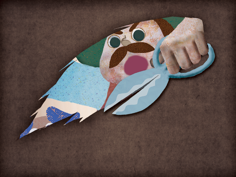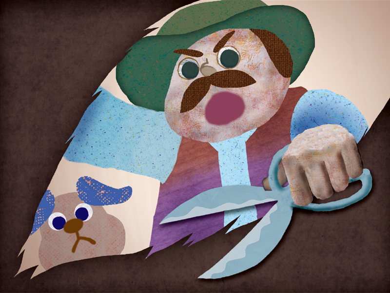はさみで オオカミの おなかを きりひらきます。