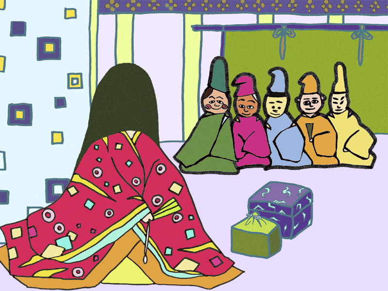 たくさんの ひとが かぐやひめに けっこんを もうしこんできます。