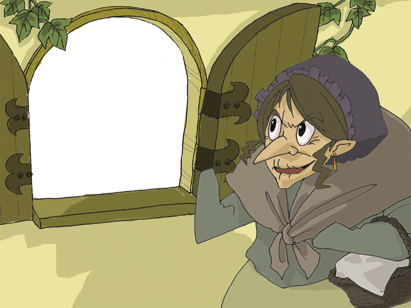 しらゆきひめは、まどから かおを のぞかせて いいました。
