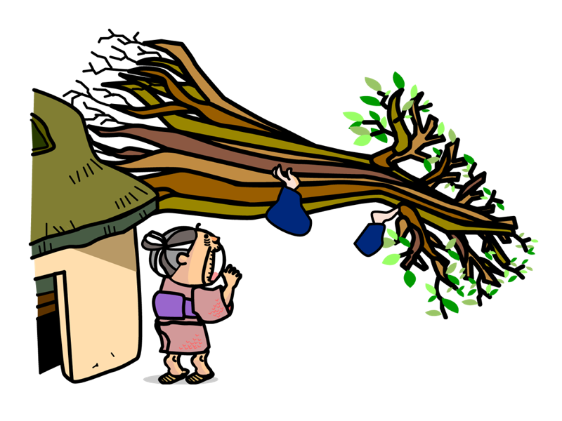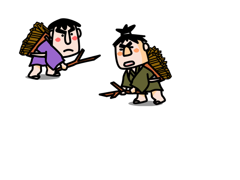 「わらじ できたろ、たきぎ とりにいくべえ。」