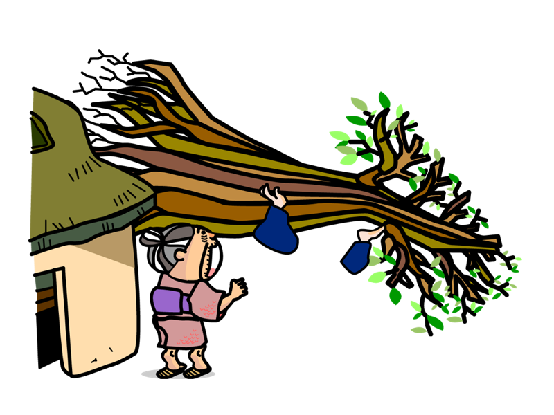 おばあさんは、のきが こわれる たきぎとは どんなものかと、