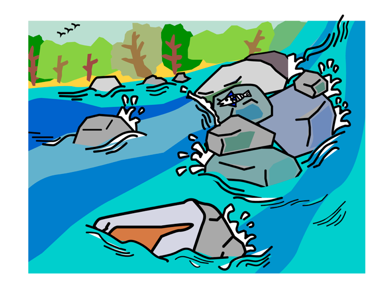 さかなが いる かわの まんなかまで いったところで、